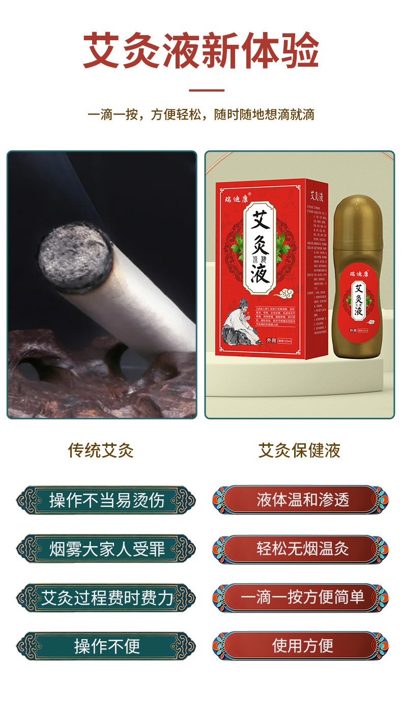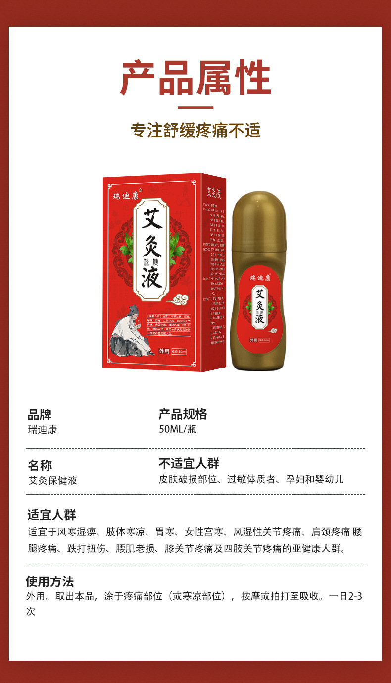 瑞迪康艾灸液頸椎膝蓋舒筋活絡(luò)液家用滾珠式艾灸按摩液源頭廠家